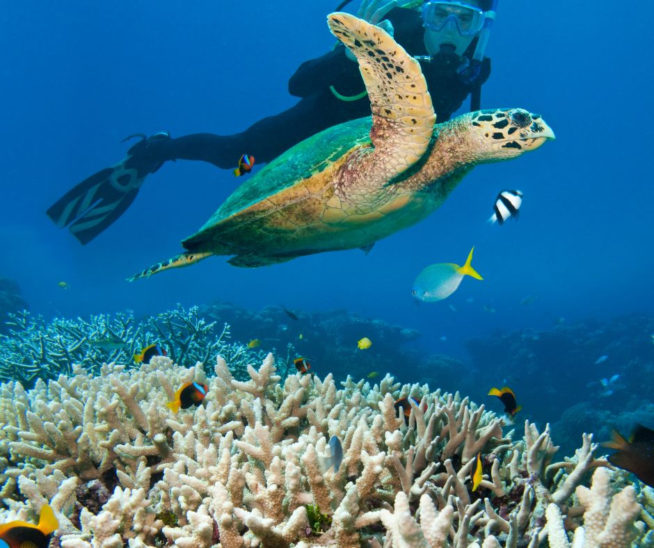 Swim above colorful reefs and spot tropical fish in shallow, safe lagoons perfect for beginners.